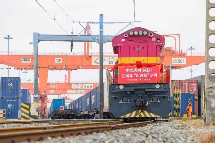 当天上午10时,中欧班列(成渝)五周年“川渝造”班列环球策路分别从成都国际铁路港、重庆团结村中心站驶出,发往荷兰蒂尔堡和德国杜伊斯堡,标志着班列迈入更高层次发展阶段。